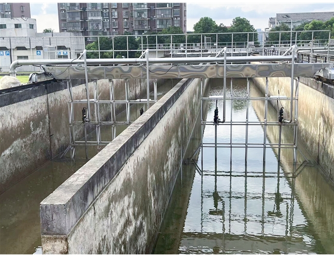 行车式泵吸泥机由四点支撑行走大梁横跨在平流式沉淀池上,双边驱动,池两边均铺设钢轨,从池的一端运行到池子的另一端,边行走边吸泥,撞到行程控制,折返行走,回程吸泥,完成一个工作周期。